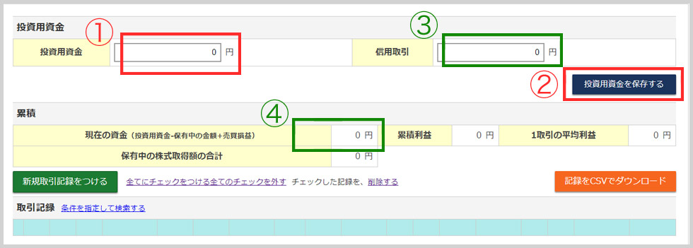 投資用資金を入力して、投資用資金を保存するボタンを推下してください。