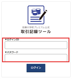 ログインに必要なIDとPWは、投資の学校プレミアム事務局にて発行します。